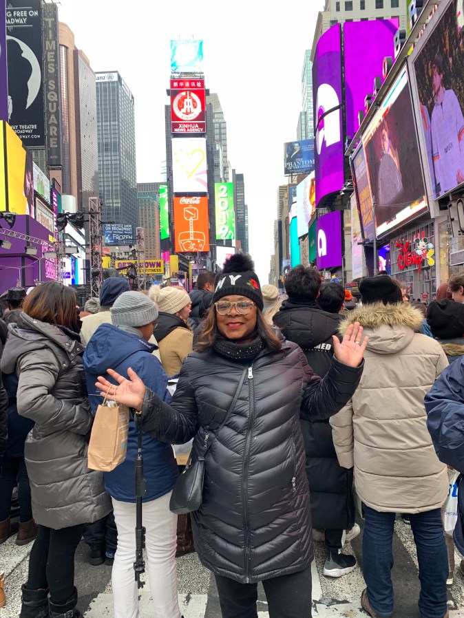 Well, we are at the end of the year and what better way to celebrate than to go to New York City… Currently, I’m in Times Square, as I type this waiting for midnight to come… Keep in mind, I’ve been here in one spot , a great spot I might add , since 8:30 a.m waiting to do this once in a lifetime opportunity that’s on my bucket list . The New Year’s Eve Ball Drop is exciting, but you must come prepared and read all the tips they give you, because once your inside the square, if you leave out, you can’t get back in…….What a way to spend New Year’s Eve than being right in the midst of all the happenings in NYC… The excitement of all this is so much fun…. You’re meeting people from all over the world…. It’s something to see everyone standing out here in this freezing cold……. But you do whatever when you’re determine to fulfilled those dreams……..